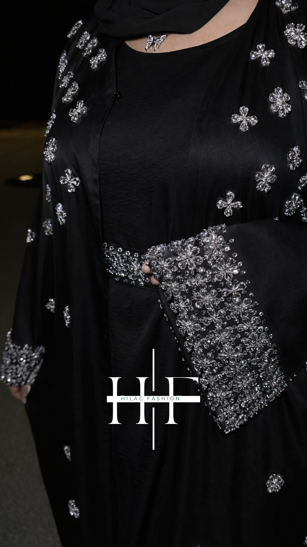 Black Silver Royal Crystal Abaya