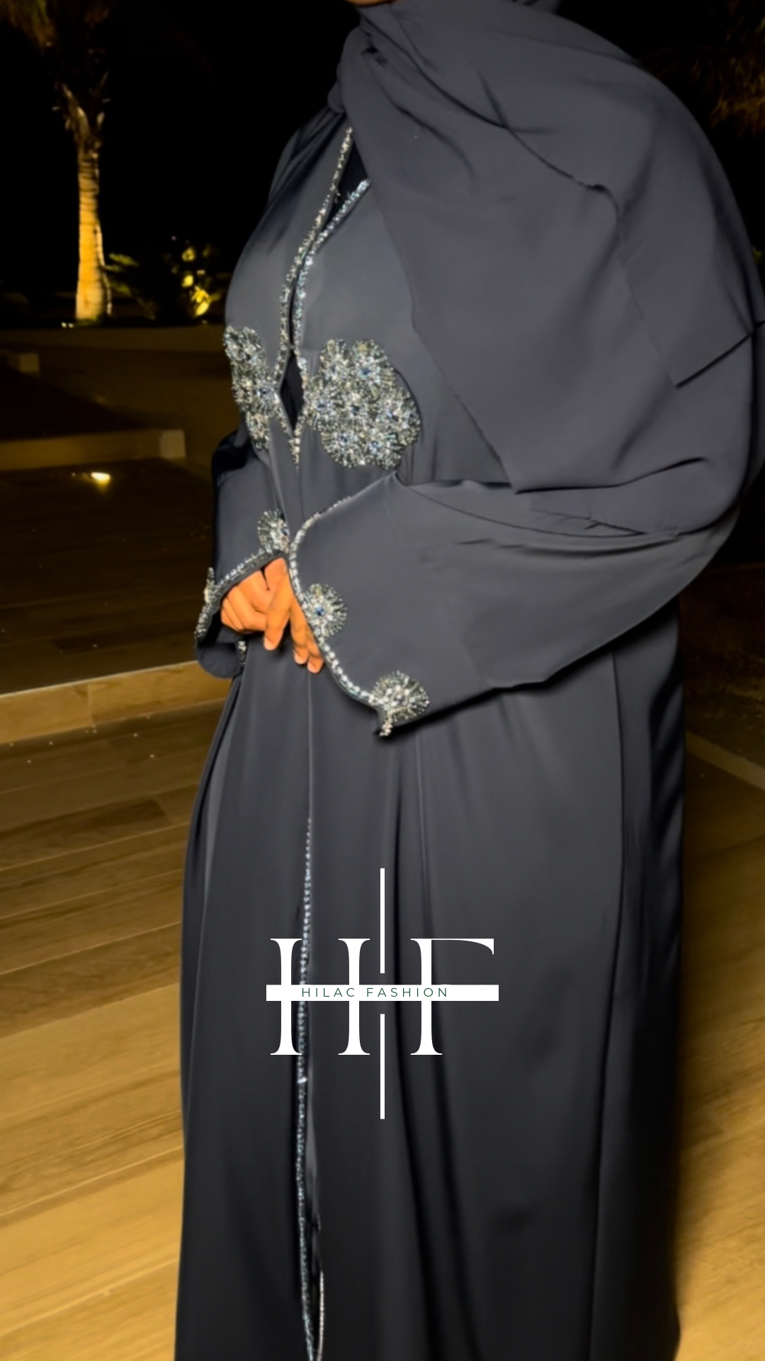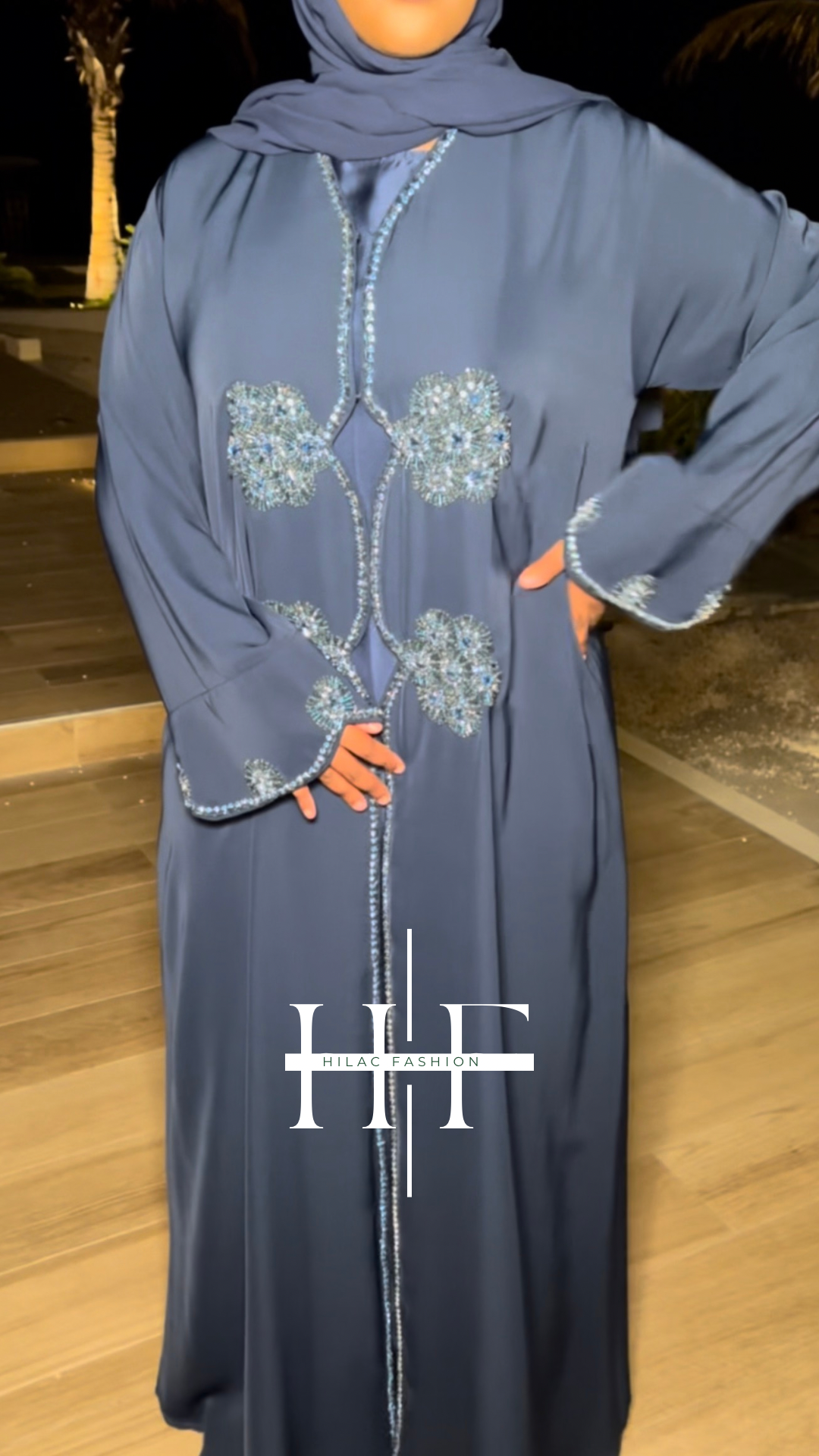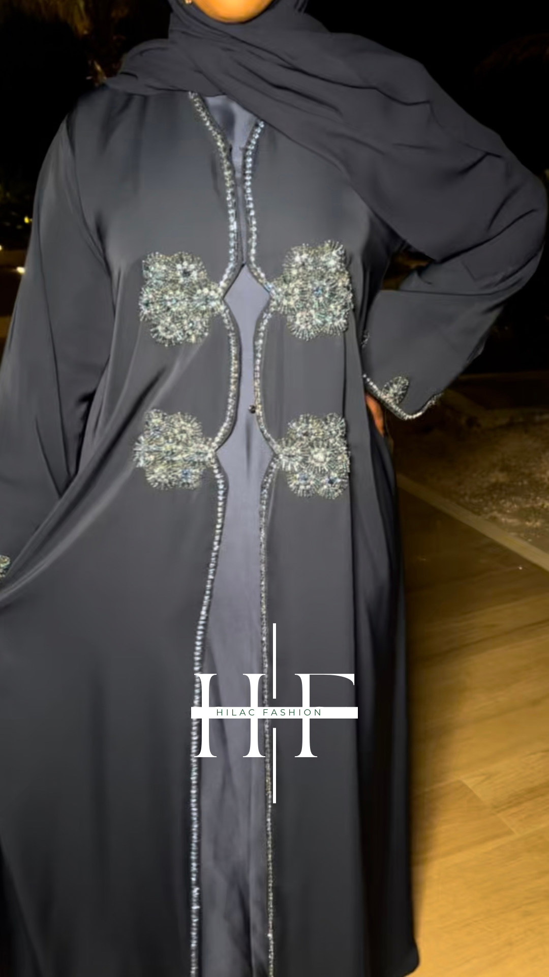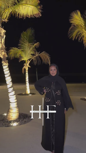 Shaped open abaya available in black, green, and navy blue is crafted from premium Angelica material for a smooth, elegant finish.